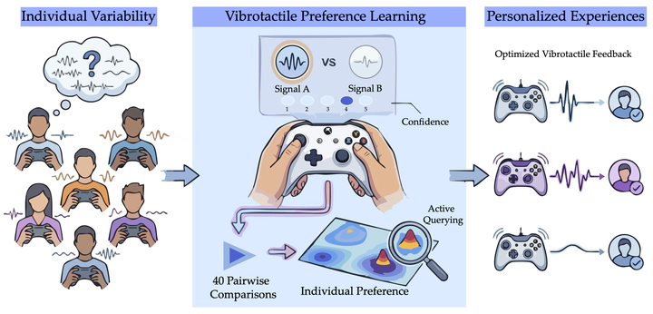 Most practical haptic systems still rely on fixed vibration presets or manual slider tuning. That is problematic because users differ in perception, comfort, and preference, and many non-expert users do not understand parameters such as intensity or rhythm well enough to tune them directly.